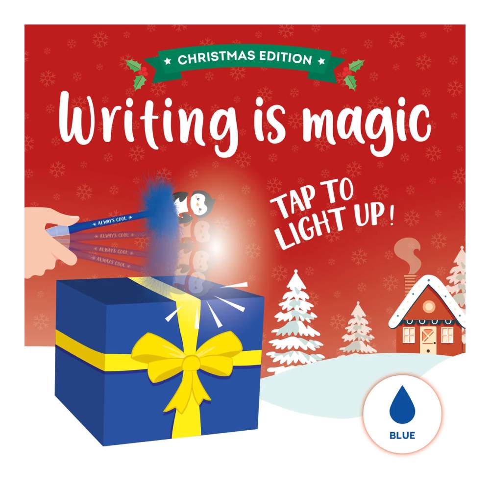 Golpea el muñeco contra la mesa y el bolígrafo se iluminará y estará listo para escribir deseos, listas de regalos y cartas con todo el espíritu de la Navidad.