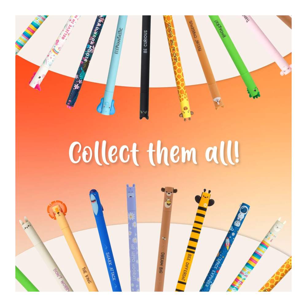 Tierno e increíble bolígrafo de la colección de animales de Legami. El único con tinta termosensible que elimina los errores en un instante gracias a la esfera situada en el extremo. No te preocupes si se gastan: gracias a los recambios de venta por separado, podrás recargar tu bolígrafo todas las veces que quieras.