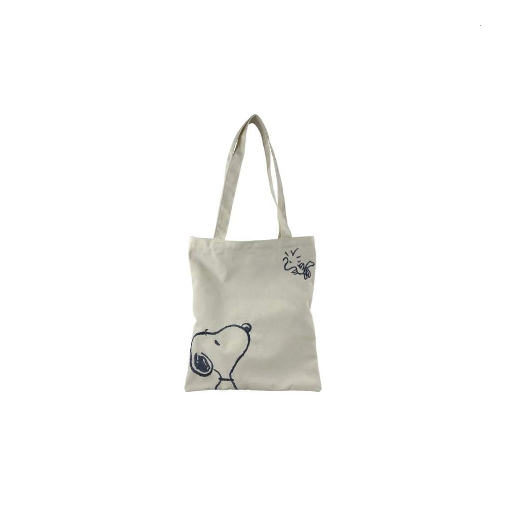 Esta original bolsa de tela de Snoopy tiene un divertido diseño de temática de comic en un bonito color crema. Sus detalles bordados del mítico personaje la hacen aún mas especial. Además, podrás plegarla y llevarla siempre contigo a todas tus compras.