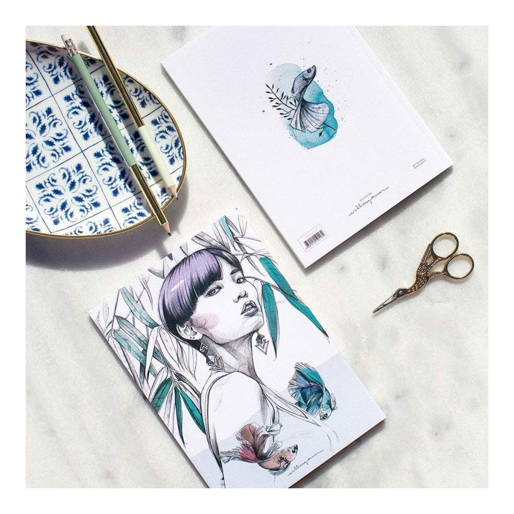 Cuaderno de 80 páginas (cuadrícula de puntos) con una preciosa ilustración a todo color de Esther Gómez en papel especial texturizado.