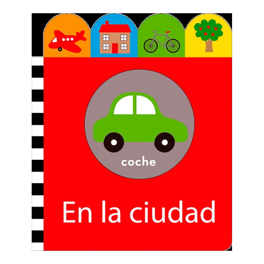 Libro con palabras, para aprender explorando los diferentes edificios y lugares de la ciudad. Para niños de 1 a 4 años de edad.