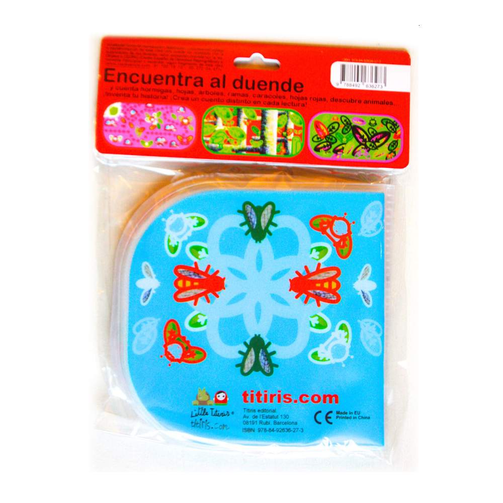 Encuentra al duende pertenece a la serie mira-mira de TITIRIS y es un librito de baño para distraer a los niños de 0 a 2 años mientras se les baña o se les da de comer.