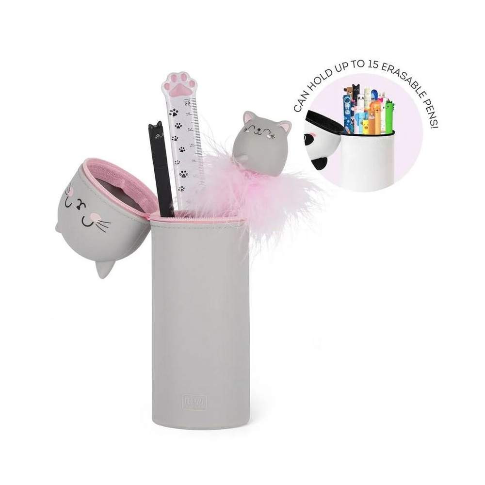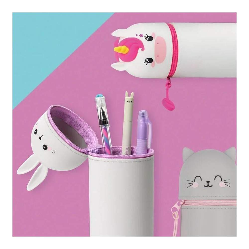 Todos los superhéroes tienen una doble identidad: Kawaii, el Estuche de Silicona suave 2 en 1 con temática Kitty de Legami puede transformarse fácilmente en un lapicero de mesa girándolo sobre sí mismo. ¿Cómo es posible? El mérito es de su capacidad retráctil, que le permite mantenerse en pie con orgullo en cualquier escritorio. Cierre: CREMALLERAMaterial: SILICONAAltura (cm): 19Anchura (cm): 6.3Profundidad (cm): 6.3Diameter (cm): 6.3