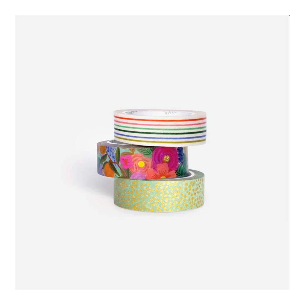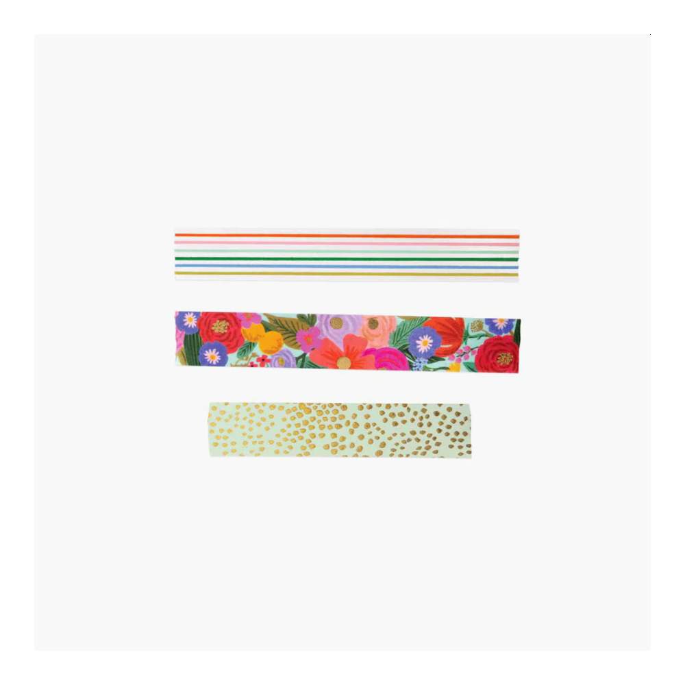 Set de tres cintas adhesivas tipo washi tape, estampadas.