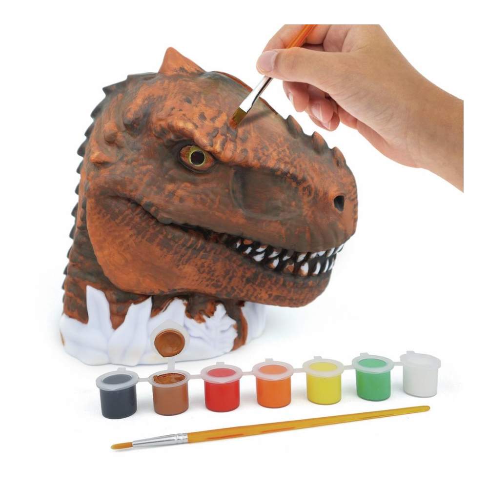 Hucha en forma de cabeza de T-Rex personalizable con pinturas para darle color a tu gusto ¡Nunca fue tan divertido ahorrar! Pero no te lo pierdas… también podrás esconder secretos en forma de notas en su interior.