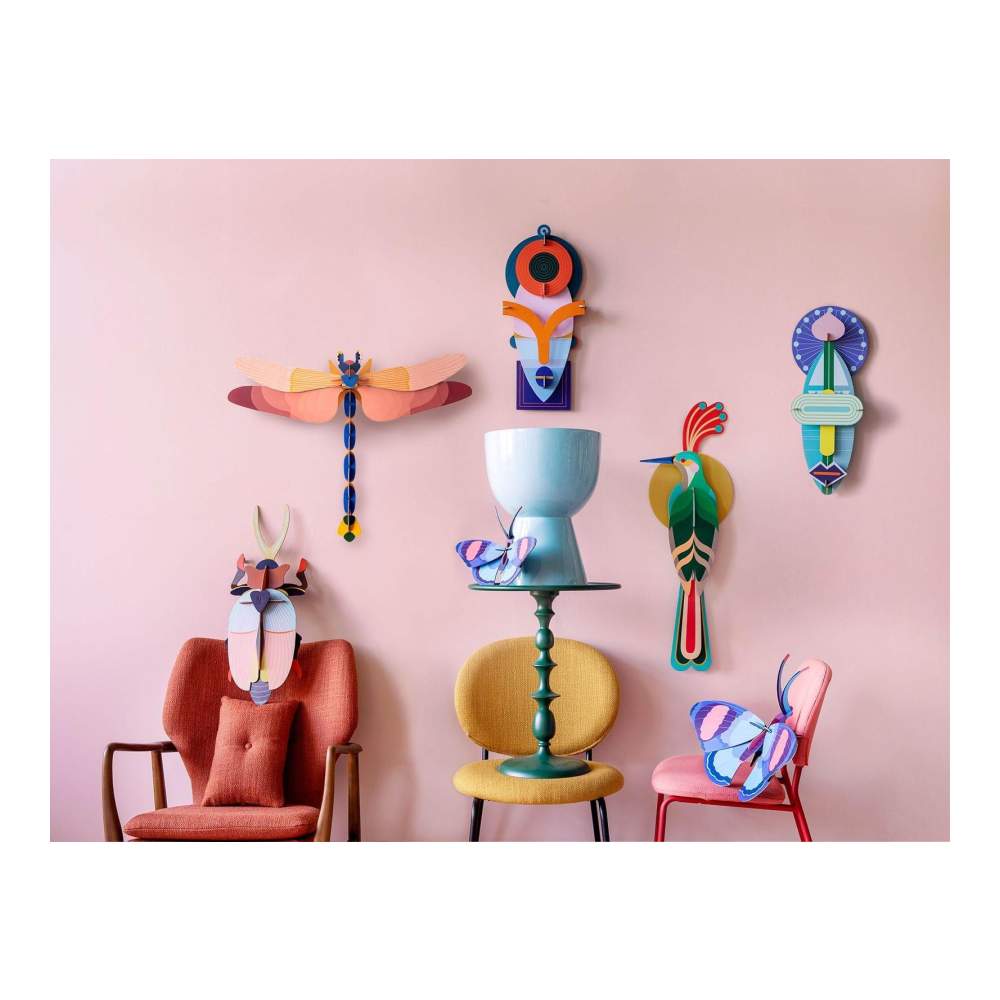¡El más opulento de todos los insectos, la libélula rosa, ha crecido y polinizará su hogar con belleza!Objeto 3D para construir, viene empaquetado.Fabricado en cartón reciclado e impreso con tintas vegetales.Dimensiones construidas: 90 x 13 x 75 cm / 35,4 × 5,1 × 29,5 ‘4 hojas A3 con 24 piezas para sacar y montar.Las instrucciones de montaje se pueden encontrar en el interior del embalaje.