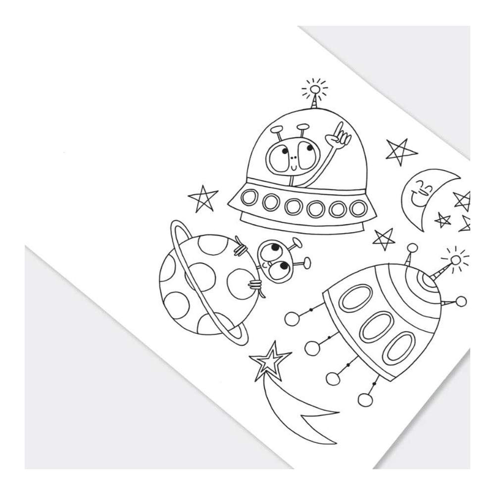 Este brillante y llamativo libro para colorear para niños con temática espacial contiene 12 páginas de personajes temáticos para colorear. Las páginas interiores están impresas en un lado dejando el reverso en blanco para dibujar o escribir.