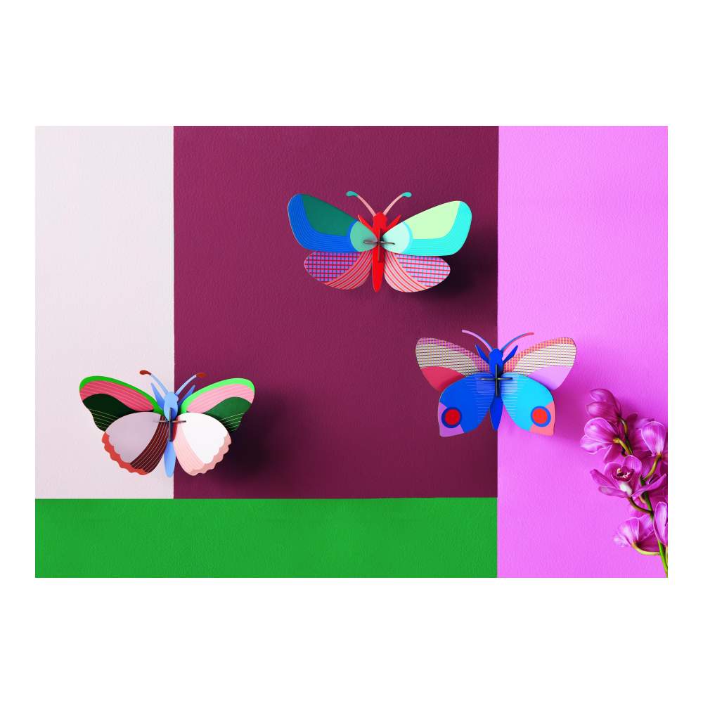 ¡Esta mariposa es una pieza de arte gráfico para colocar en la pared y obtener una explosión de color instantánea!Información del ProductoObjeto 3D para construir, viene en paquete plano;Realizado en cartón reciclado e impreso con tintas vegetales;Dimensiones montado: 28×9,5×16 cm / 11×3,7×6,2′;2 hojas B5 con 12 piezas para sacar y ensamblar;Las instrucciones de montaje se encuentran en el interior del embalaje.