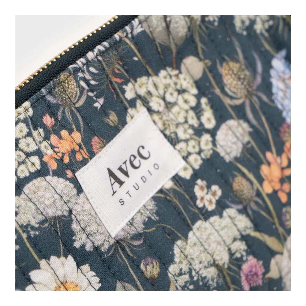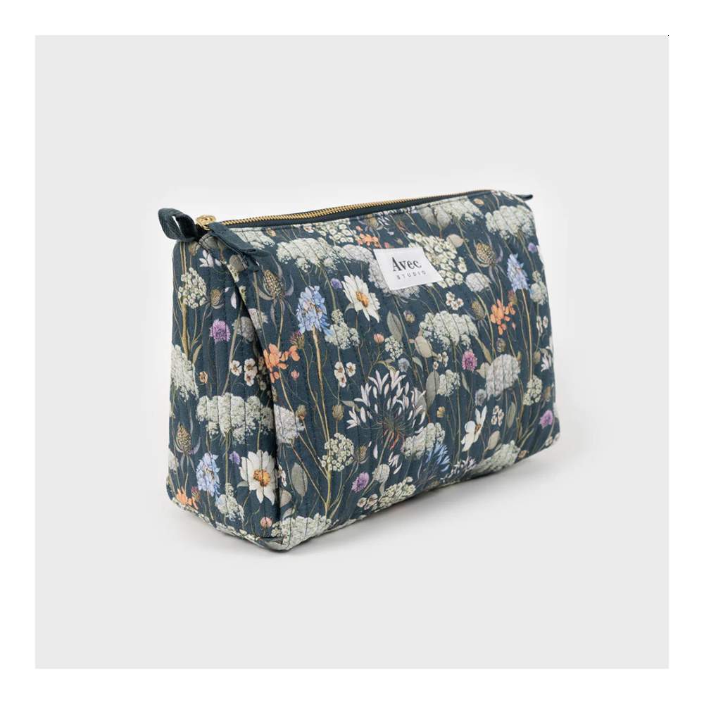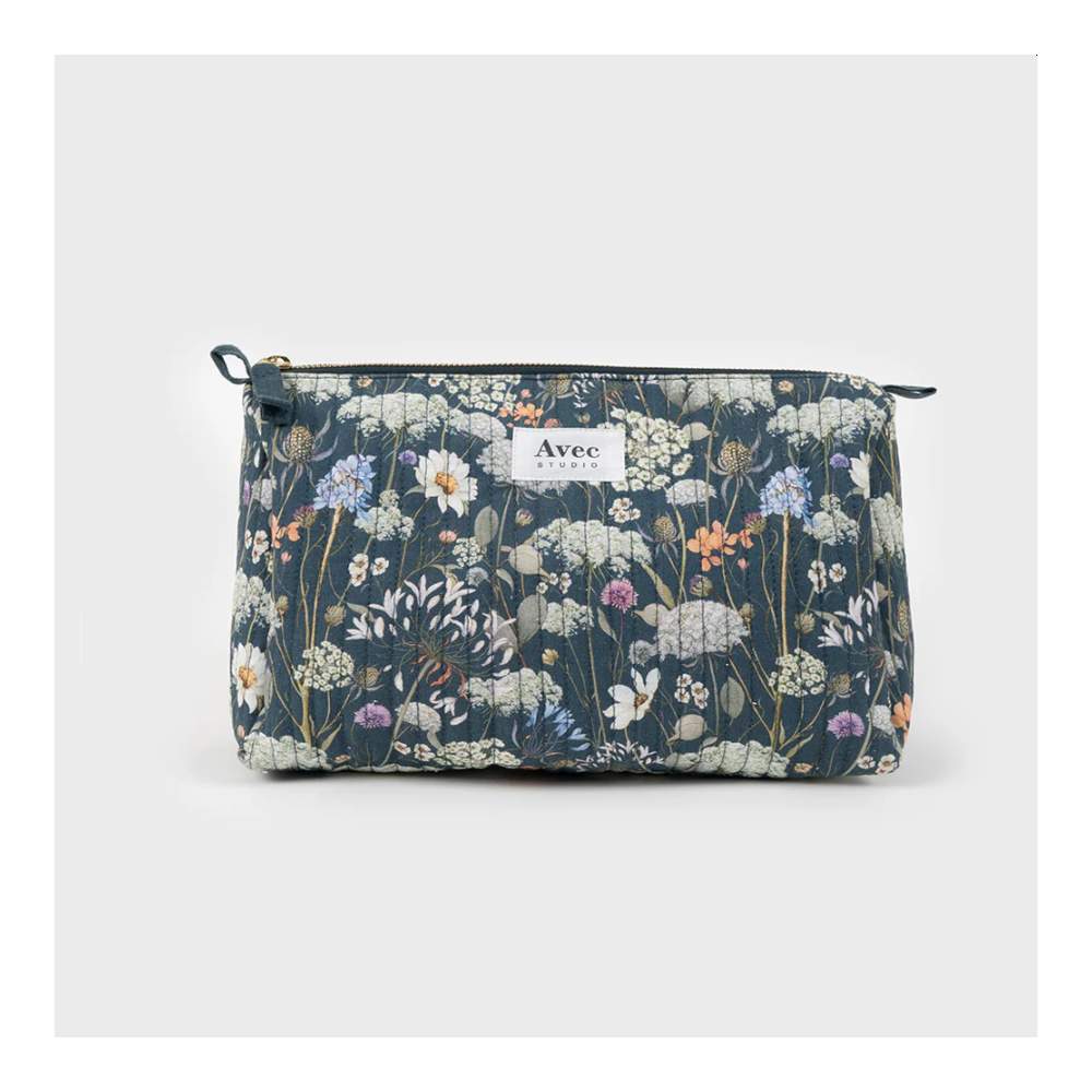 Neceser acolchado grande con un bonito estampado floral Wild Flowers y cierre de cremallera, ideal para llevar todo lo que necesitas en tus viajes o para organizar tus productos favoritos.