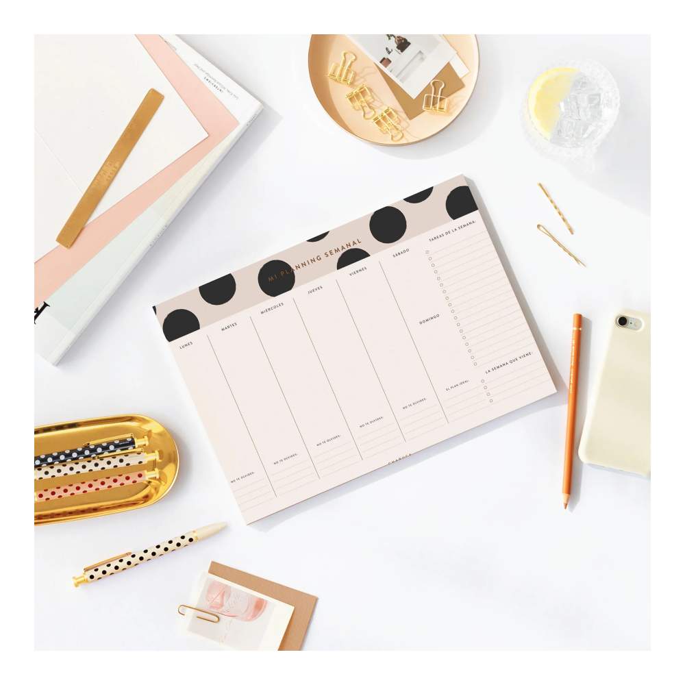 Planificador semanal en tamaño A4, para que tengas mucho espacio para organizar tus citas y notas. También puedes escribir en él tus tareas de la semana.