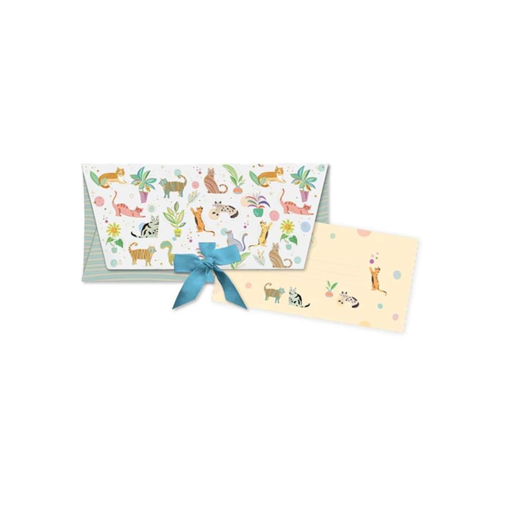 Sobre para regalo con lazo y tarjeta de gatitos.
