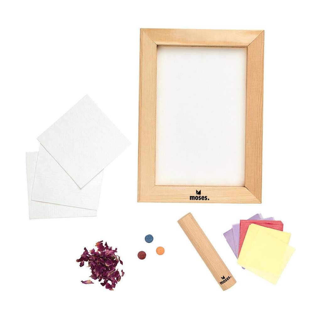 Para las mentes más creativas, éste magnífico kit para poder hacer tu propio papel y además lo puedes decorar con pétalos o con colores.